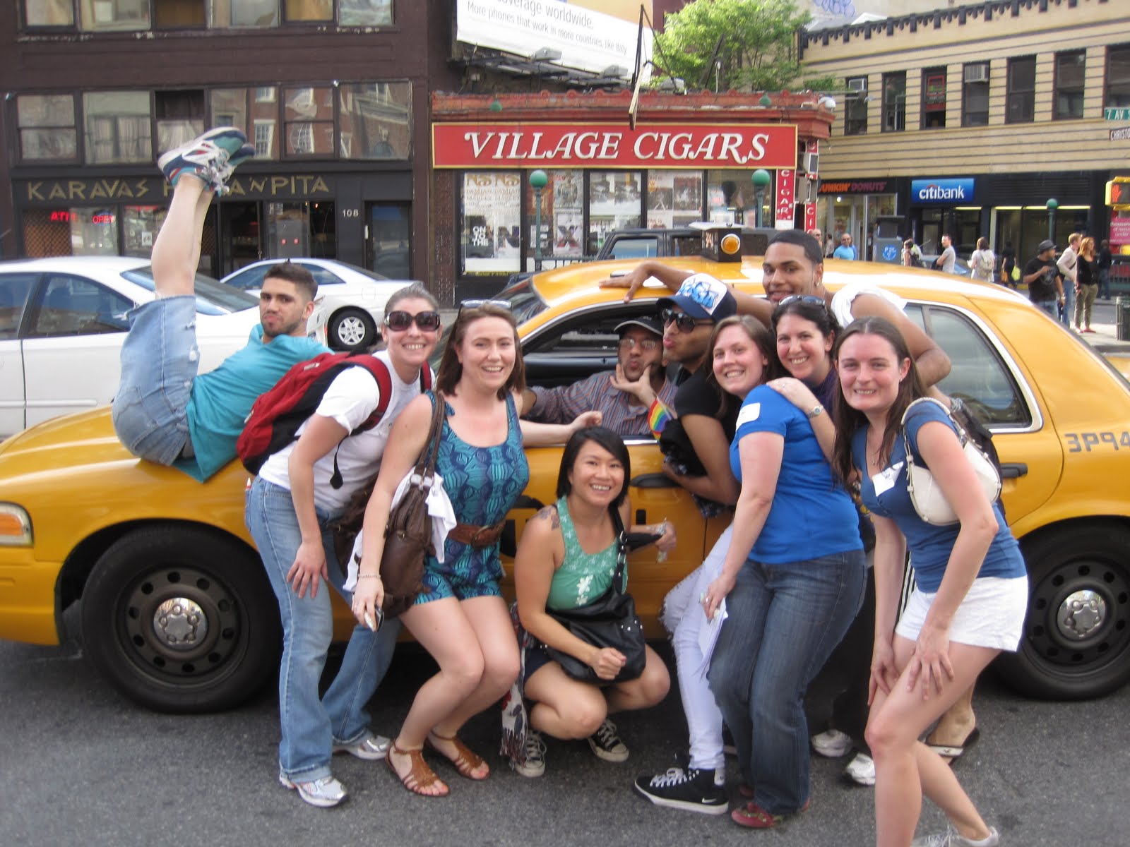 there's a race here called the amazing race nyc and a few friends and i did it. SO fun! basically, we had a list of things we had to do and things we could do for extra points. along the way, we had to take pictures of our activities, with the whole team in the pictures, to take back to the village pourhouse where we would show the judges how much we kick arse. well, that was the plan anyway. we had to do stuff like take a picture with: a man and a toddler, a musician, with a kissing couple, someone w/ a subway map, and our most favorite one, with a taxi driver (gay boys did not have to be included). i got to do a lot of the touristy things on my to do list so it was great and team white noise worked very well together.